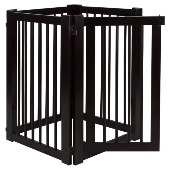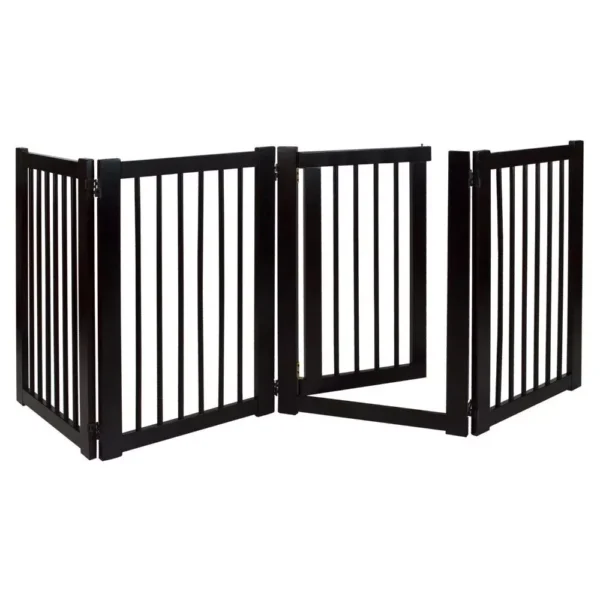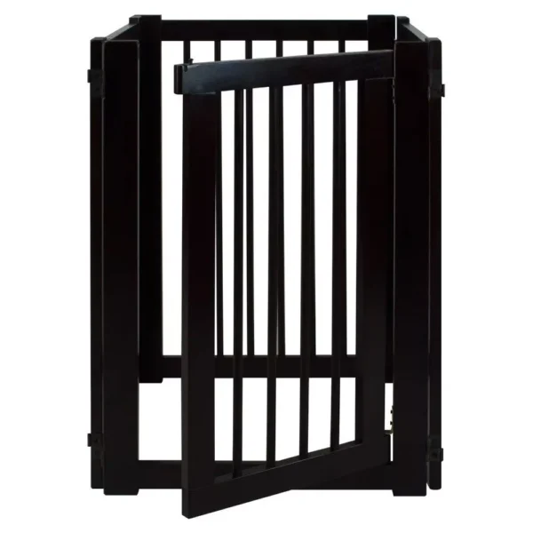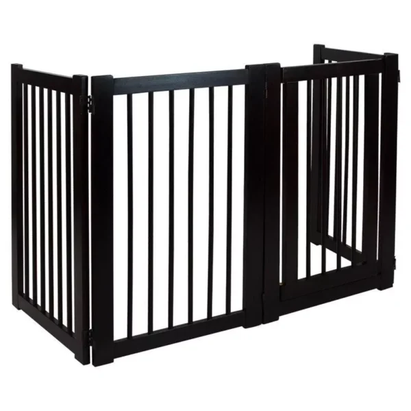 Unlike other pet gates, ours blends functionality with style. The elegant espresso finish complements your home decor, making it more than just a pet accessory—it’s a piece of furniture. The robust construction ensures that it withstands the energetic play of your pets, providing a secure and stylish solution for pet owners.