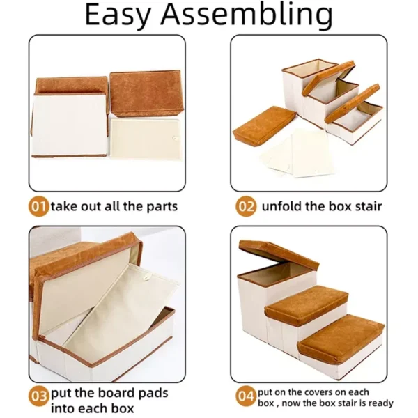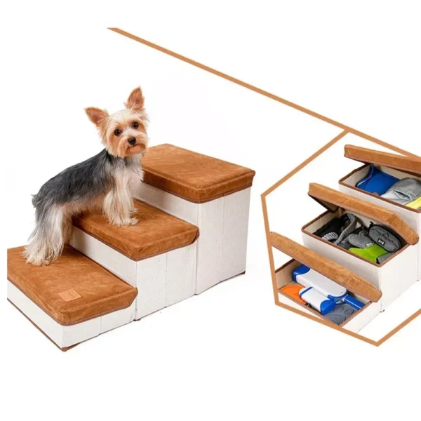 - Dual-function design – a pet staircase and a storage box for pet essentials.